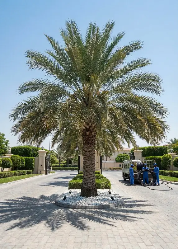 Medjool palms thrive in UAE conditions but require consistent care. While we ensure professional planting, ongoing maintenance including deep watering (especially during summer), regular fertilization, and pest monitoring falls under client responsibility. Our premium care guide provides detailed schedules and best practices.
